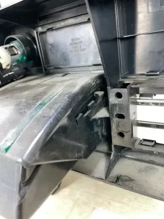 Führung des Aschenbechereinsatzes teils ausgebrochen, siehe Fotos, der Einsatz lässt sich jedoch ohne Probleme ein- und ausschieben