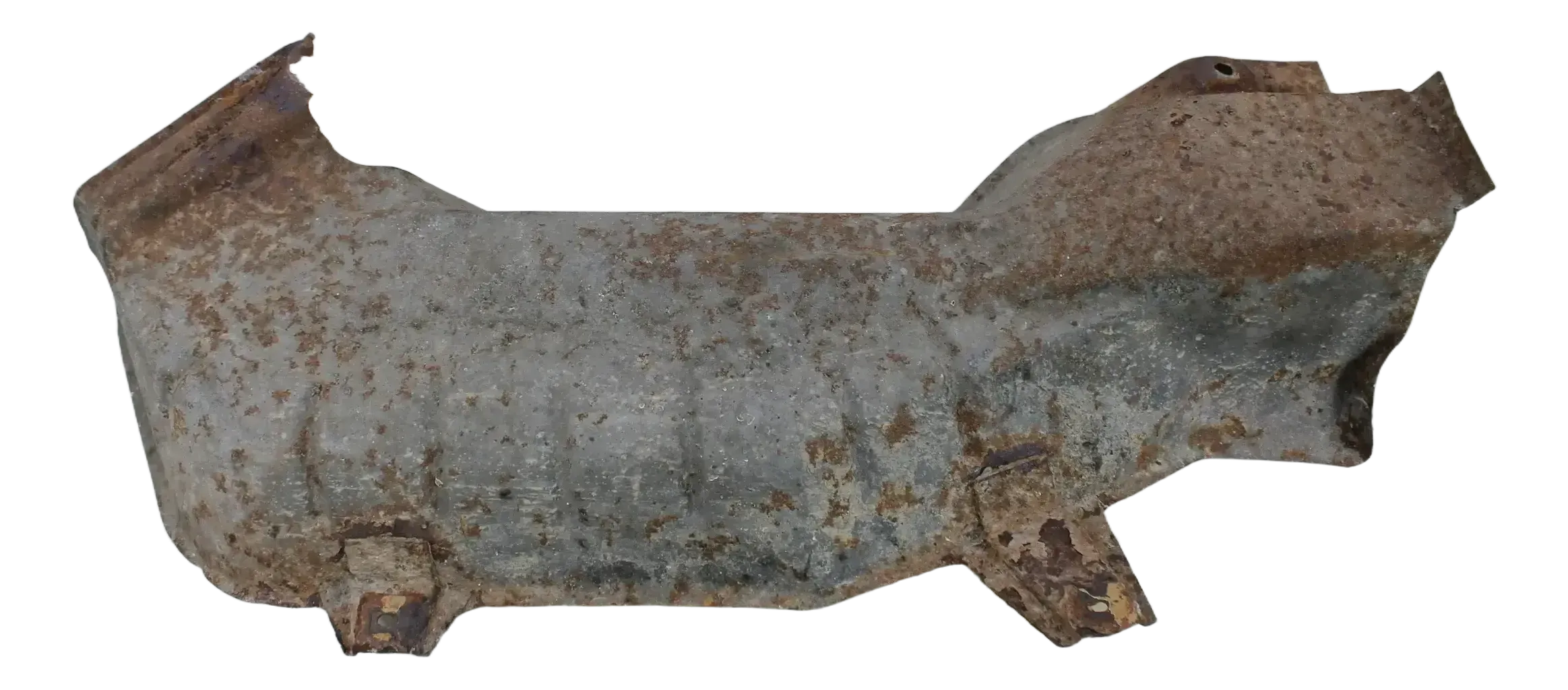 keine Durchrostungen, nur Flugrost, Blech ist stabil, etwas verzogen, beim festschrauben gibt sich das wieder