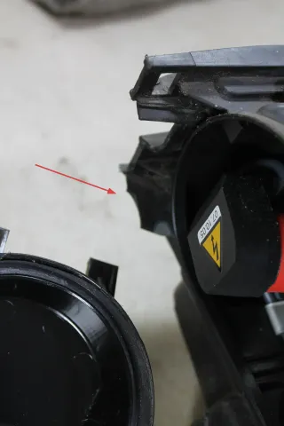 eine Halteöse der Wartungsklappe auf der Rückseite ausgebrochen, siehe Markierung in Bild 9, die Wartungsklappe sitzt trotzdem fest an seiner Position