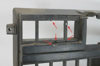 Löcher im Bereich links oben und ein Steg ausgebrochen, siehe Markierungen Bild 2