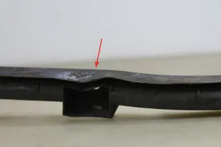 Kante verbogen, das ganze Teil hat einen leichten Knick, siehe Markierungen in den Bildern