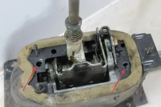 Schrauben fehlen, welche Schaltmechanismus mit Blechkasten verbinden, siehe Markierung Bild 4