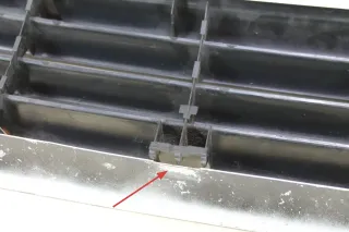 Kunststoffklemmen zur Befestigung des Grills am Metallteil fehlen, siehe Markierungen in den Bildern